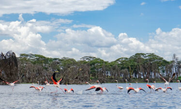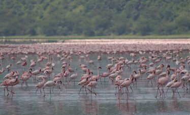Lake Nakuru is internationally renowned for its flamingo population, which often creates a beautiful pinkish hue along the lake’s shores. Though the number of flamingos has fluctuated in recent years due to changes in the water levels, the park is still a major birdwatching destination, home to over 450 bird species, including pelicans, herons, and the endangered white-backed vultures.