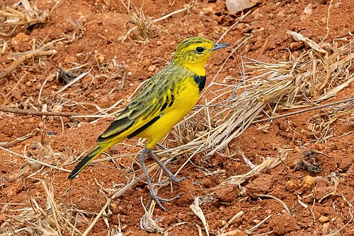 The Sharpe’s longclaw is a striking bird endemic to Kenya, belonging to the same family as larks. It is recognized by its bright yellow underparts, olive-brown upperparts, and a distinctive black breast band.